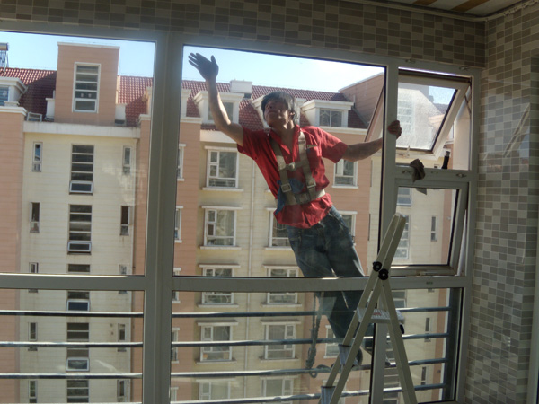 使用玻璃刮、抹水器、高效玻璃清洗劑,徹底清除污垢,對窗框、窗戶縫的塵灰與水泥膠質,用玻璃鏟刀去除。清洗劑中含有防靜電成分,經擦洗后的玻璃晶瑩、透光.